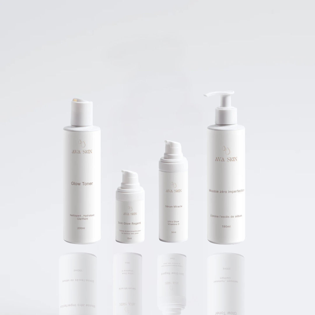 Plongez dans l’expérience Ava Skin avec la Routine Ultra Glow, une synergie de quatre soins experts conçus par une infirmière passionnée de skincare.